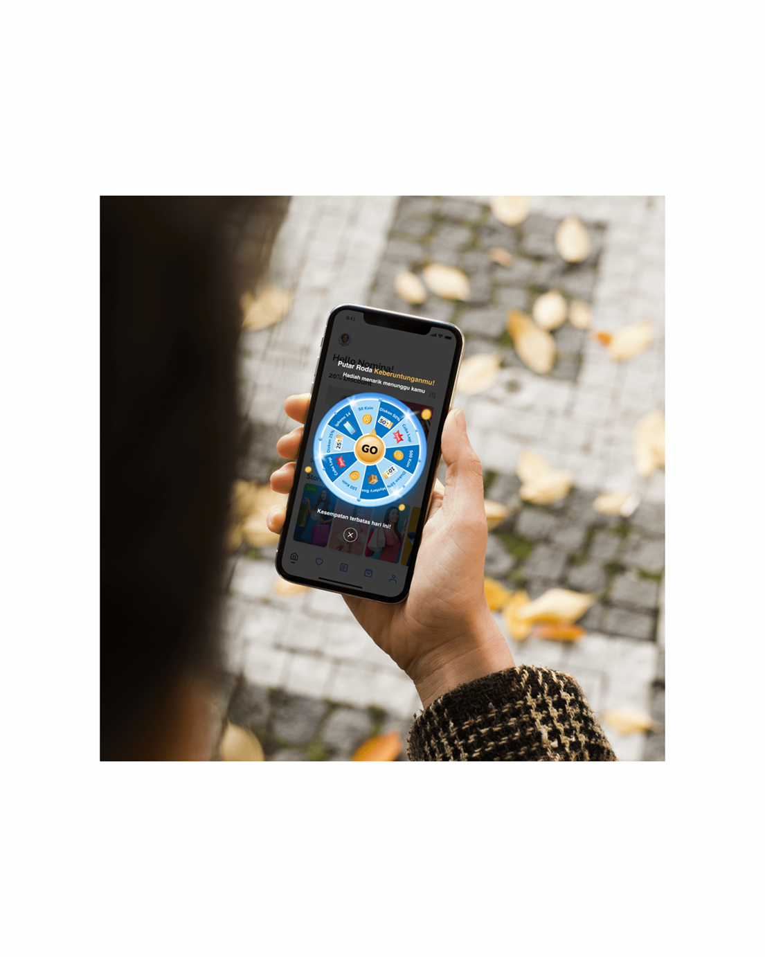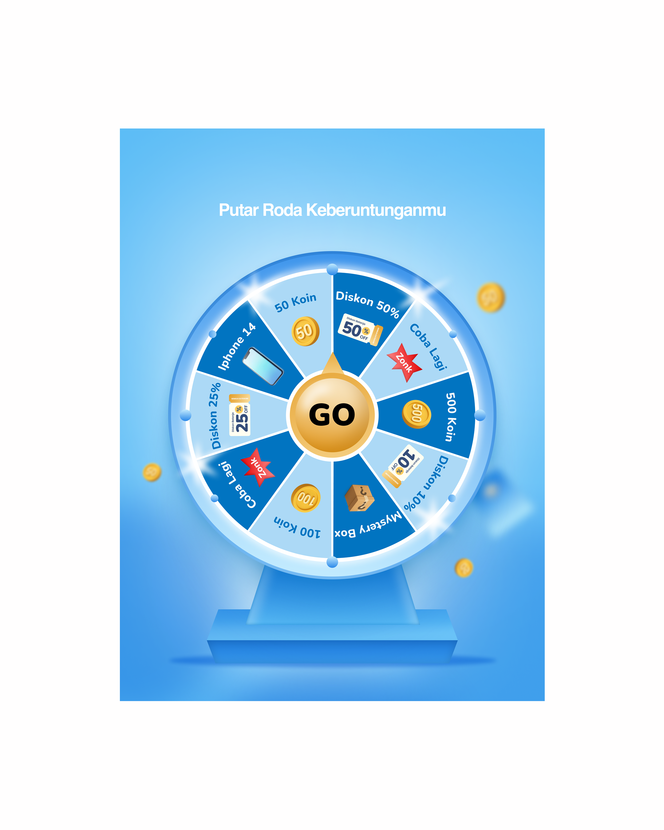 Desain antarmuka fitur “Spin the Wheel” berbasis gamifikasi untuk meningkatkan engagement pengguna dalam aplikasi mobile. Fokus utama pada visual yang menarik, interaksi yang intuitif, serta pengalaman pengguna yang menyenangkan melalui elemen animasi, reward system, dan call-to-action yang jelas.